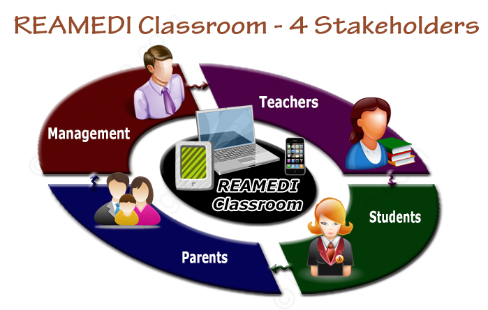 REAMEDI CLASSROOM is completely different from smart classrooms or Virtual Classrooms. REAMEDI CLASSROOM can be integrated into the day to day teaching. REAMEDI CLASSROOM is unique tablet-based cutting edge technology which is going to transform learning and teaching to a next level. REAMEDI stand for Reach Me Direct 1 teacher: 1 Student (1:1) ratio. Time for us to see beyond our conventional method of teaching with White/Blackboard, textbooks, notebooks and were no personal attention towards students. This "REAMEDI CLASSROOM" will bring new life to the entire Education system by connecting Parents, Teacher, Student & Management with effective TABLET based ICT digital interactive technological tool that makes day to day classroom more vibrate, live and interactive. Ultimately it enhances, increases learning and listening potential of students by incorporating the functions and features of regular classroom activity.